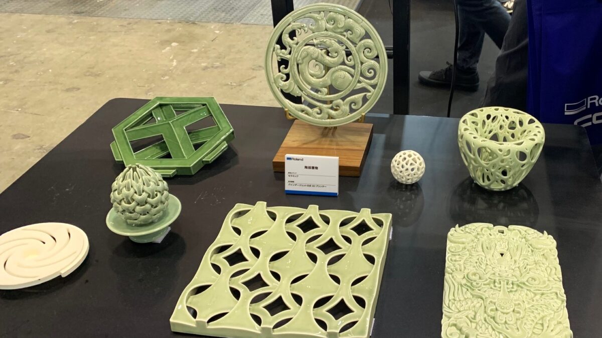 3Dプリンター 新着情報 セラミック3Dプリンタ 東京ビッグサイトで開催中の3Dプリンタ展示会「TCT Japan 2025」で見たセラミック製品。セラミックのパウダーで複雑な形状の陶器も出来てしまいます。非常に綺麗な製品でした。 (ローランドディーシー株式会社ブースにて)